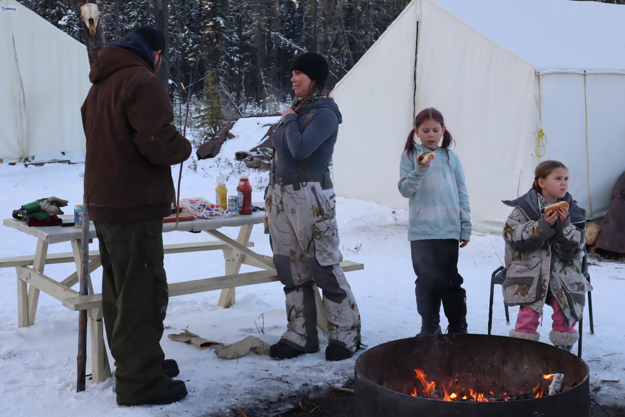The company provides transportation from Fort McMurray, including shuttle services and guided transfers via ATV or snowmobile into the camp.