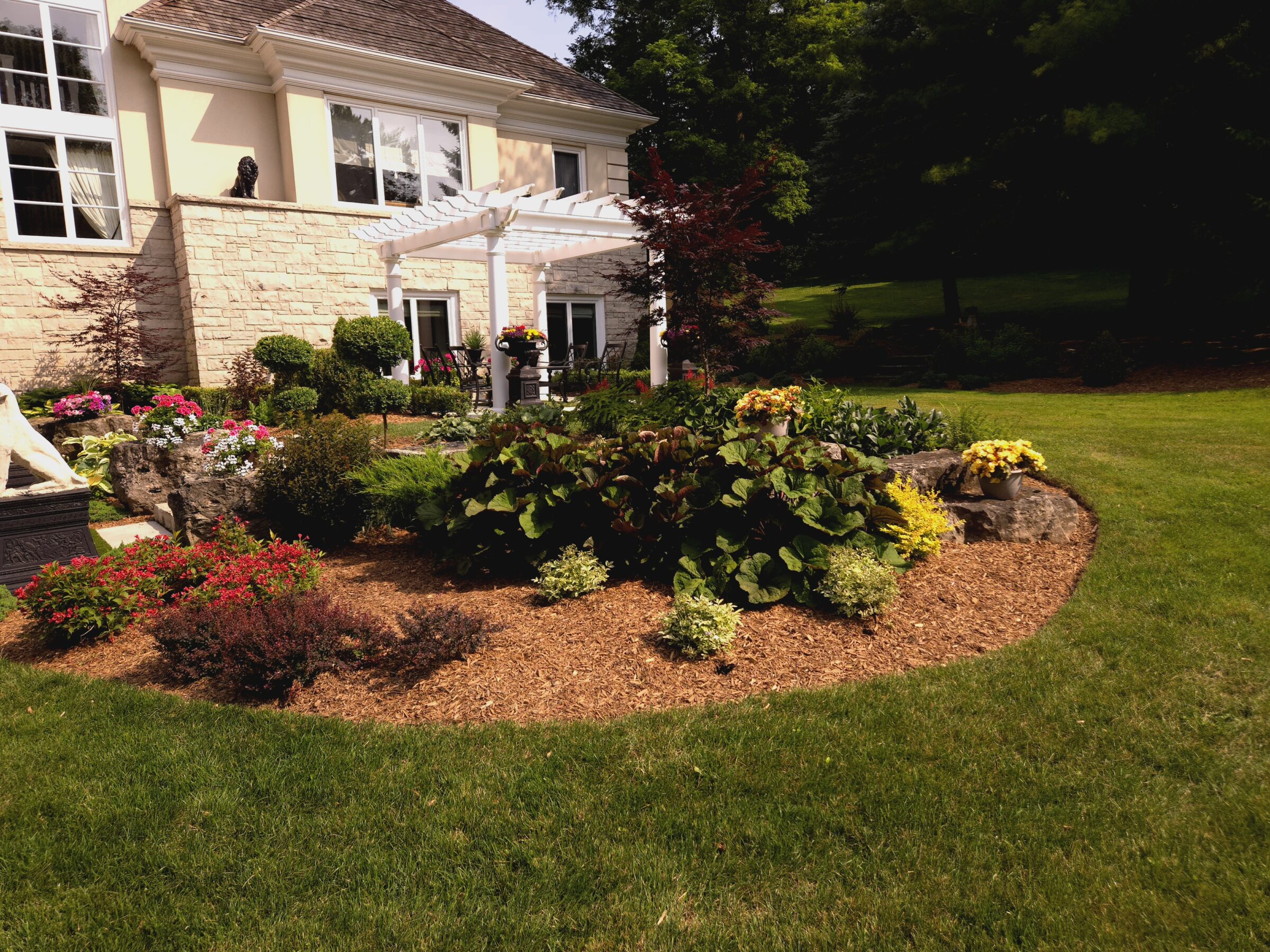 Edging creates sharp, clean lines along sidewalks, driveways, patios, and garden borders. This detail adds a polished look to the landscape and helps define lawn areas clearly.